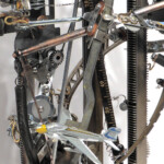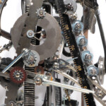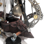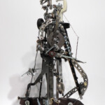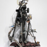 This final collage in this Aeronautical Series suggests through the metaphor of Calder’s biography how Dad’s love for building airplanes and for building things in general lives on years after his death in my own life. After retiring from a long career as a architect, I now play daily in my workshop, making sculptures that appear to be toy machines. Many of those sculptures contain Erector Set pieces, pieces from Dad’s set and from the dozens of additional sets I have purchased on eBay in recent years.
