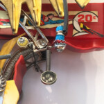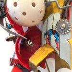 In this series I have collaged comic book images of a rogue Superman into wall-hung three-dimensional cartoons composed of typewriter pieces, plastics, and other found objects, mechanically connected with nuts and bolts as well as springs. These machine-like constructions illustrate the dysfunctional, illogical machinery already evident in the nascent Trump administration. They also foreshadow the likely disasters ahead resulting from the executive branch of the American government headed by a mentally ill man.