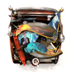 In this series I have collaged comic book images of a rogue Superman into wall-hung three-dimensional cartoons composed of typewriter pieces, plastics, and other found objects, mechanically connected with nuts and bolts as well as springs. These machine-like constructions illustrate the dysfunctional, illogical machinery already evident in the nascent Trump administration. They also foreshadow the likely disasters ahead resulting from the executive branch of the American government headed by a mentally ill man.