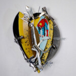 In this series I have collaged comic book images of a rogue Superman into wall-hung three-dimensional cartoons composed of typewriter pieces, plastics, and other found objects, mechanically connected with nuts and bolts as well as springs. These machine-like constructions illustrate the dysfunctional, illogical machinery already evident in the nascent Trump administration. They also foreshadow the likely disasters ahead resulting from the executive branch of the American government headed by a mentally ill man.